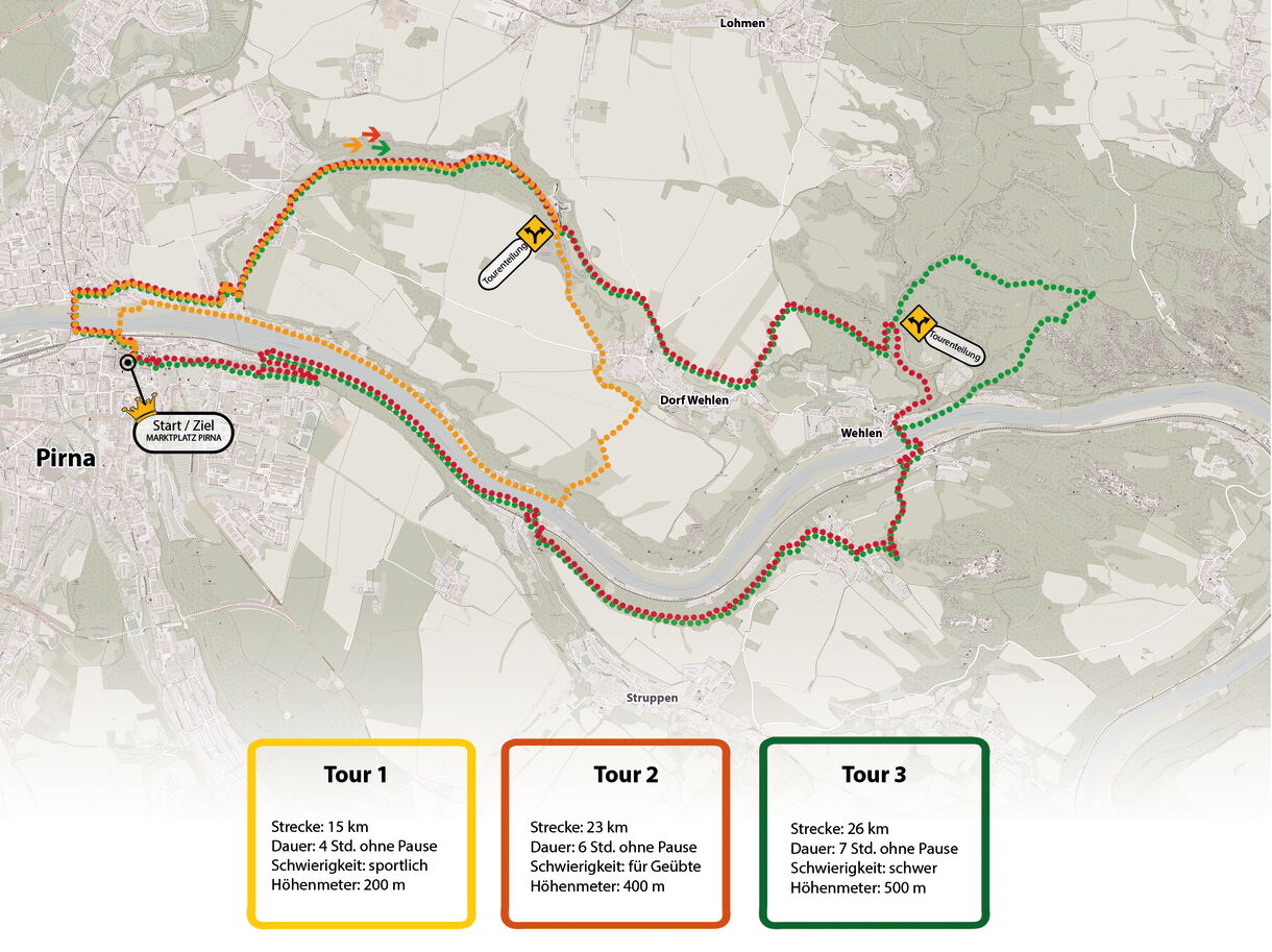 Die Natur wird im September in ihren goldenen Farben leuchten, Felstürme und Panoramablicke begleiten den Weg, und spätestens beim Ankommen auf dem Pirnaer Markt spürt man: Das war ein Tag voller Bewegung, Gemeinschaft und Entdeckungen.